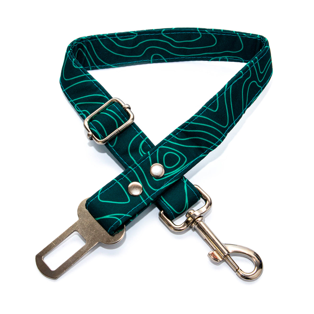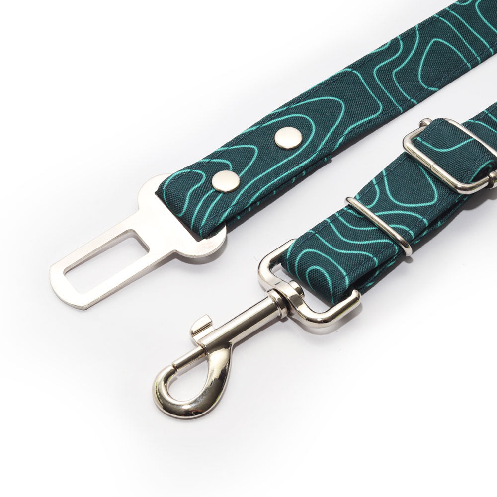 Cinturón de seguridad confeccionado a mano con distintos diseños, ideal para mantener seguro a tu compañero en el vehículo.