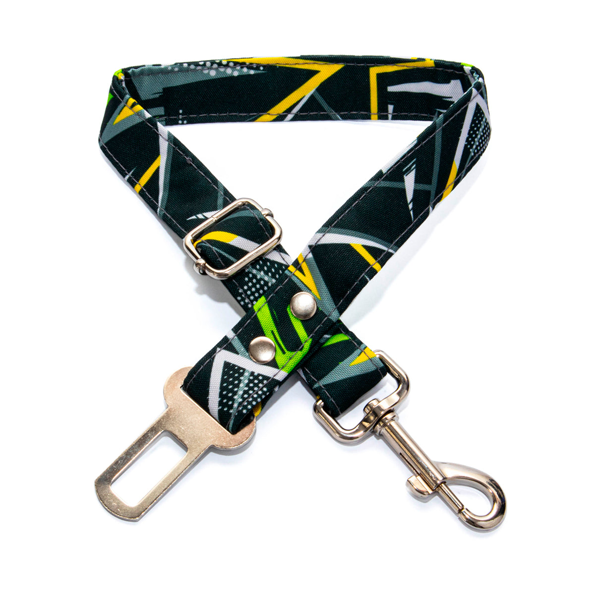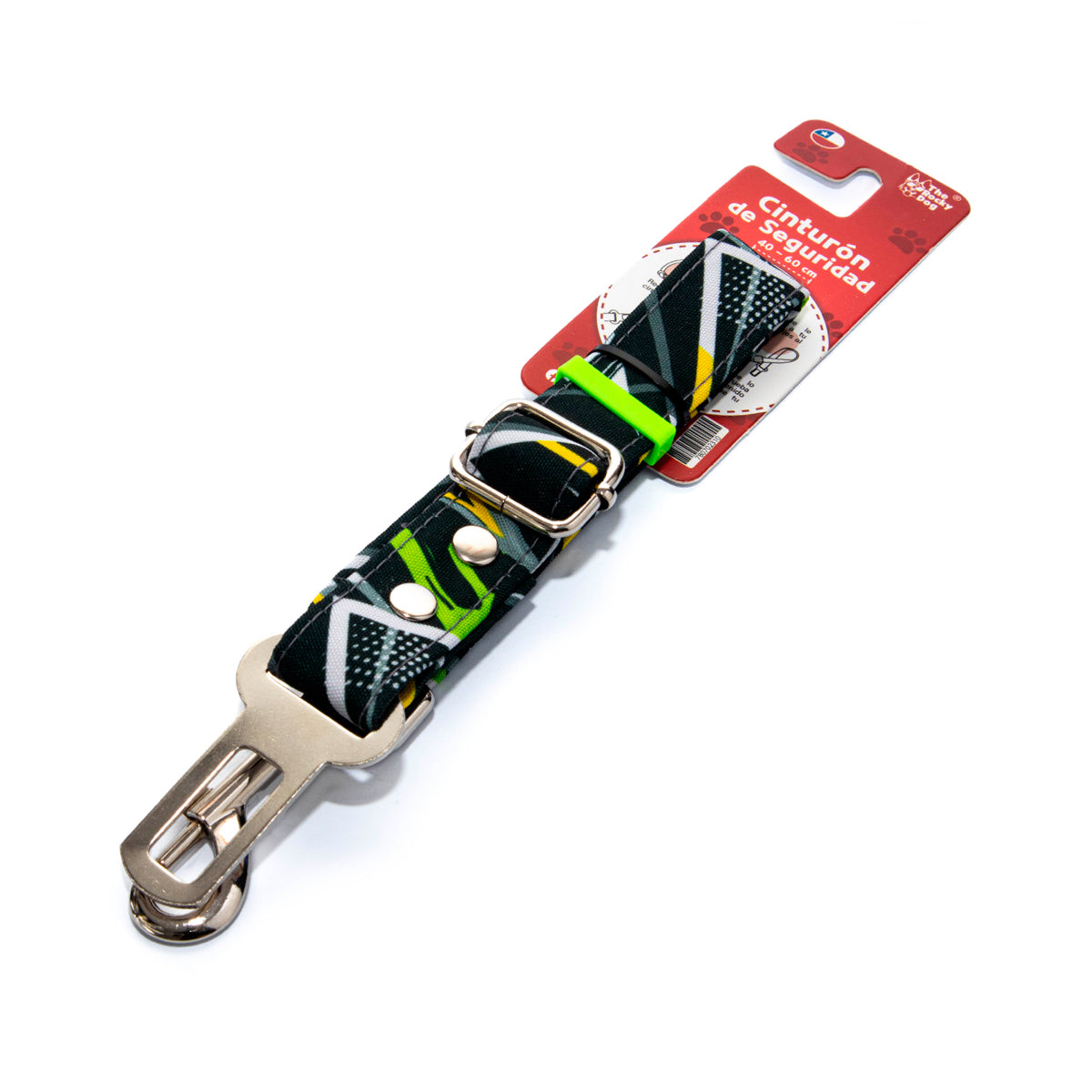 Cinturón de seguridad confeccionado a mano con distintos diseños, ideal para mantener seguro a tu compañero en el vehículo.